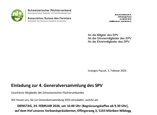 Rund 4'000 Landwirtschaftsbetriebe und die Hälfte der Landwirtschaftlichen Nutzfläche werden in Pacht bewirtschaftet. Der Schweizerische Pächterverband vertritt die Interessen aller landwirtschaftlichen PächterInnen gegenüber nationalen, kantonalen und kommunalen Behörden und setzt sich für eine konforme Umsetzung der pachtrechtlichen und bodenrechtlichen Gesetze ein.
